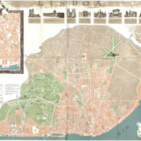 - Map with descriptions of monuments and attractions in Lisbon, including Belém Tower, Jerónimos Monastery, Lisbon Cathedral, St. George’s Castle, City Hall, museums, theatres, and historic quarters such as Alfama and Bairro Alto