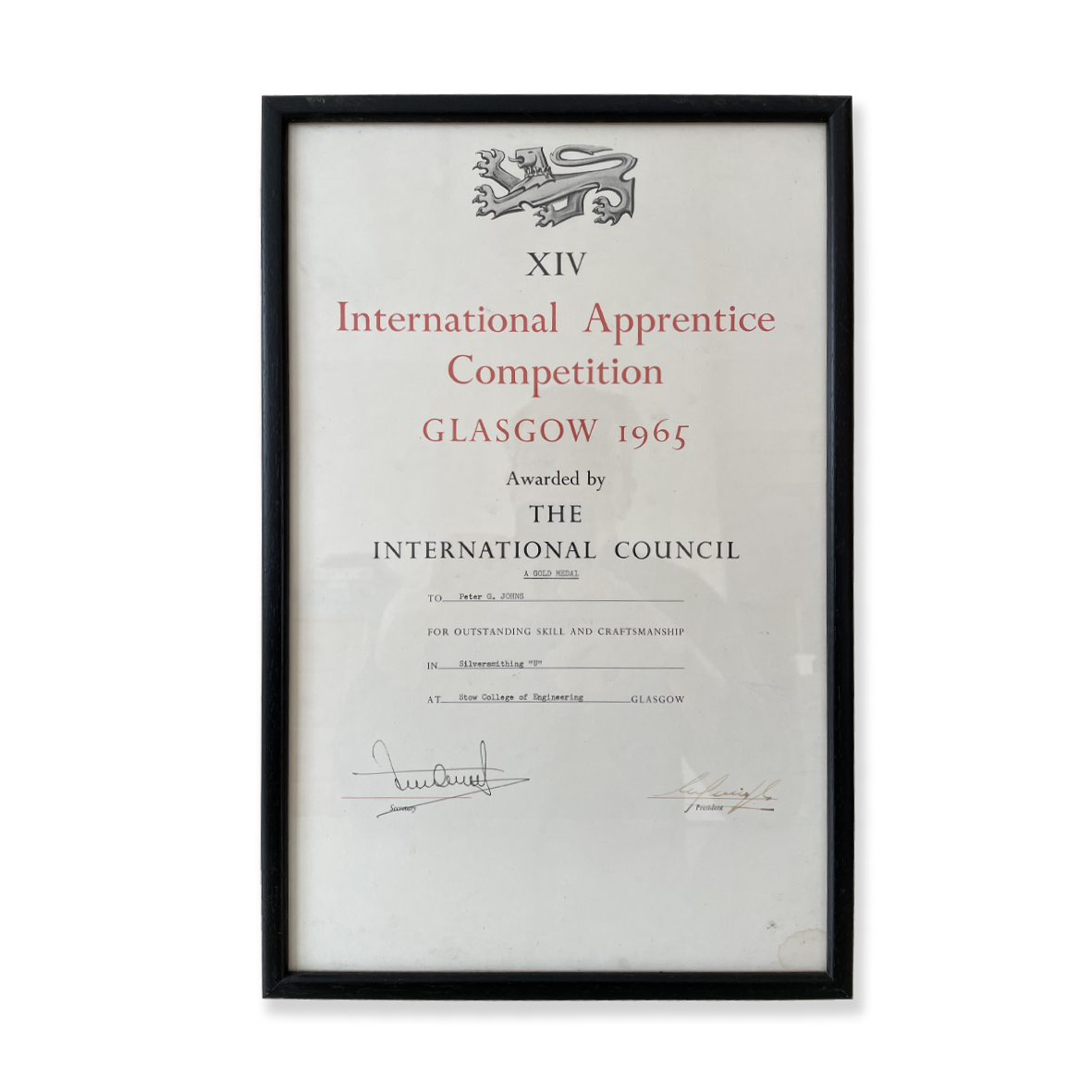 - 14th International Apprentices Competition, Glasgow 1965, framed Gold medal certificate