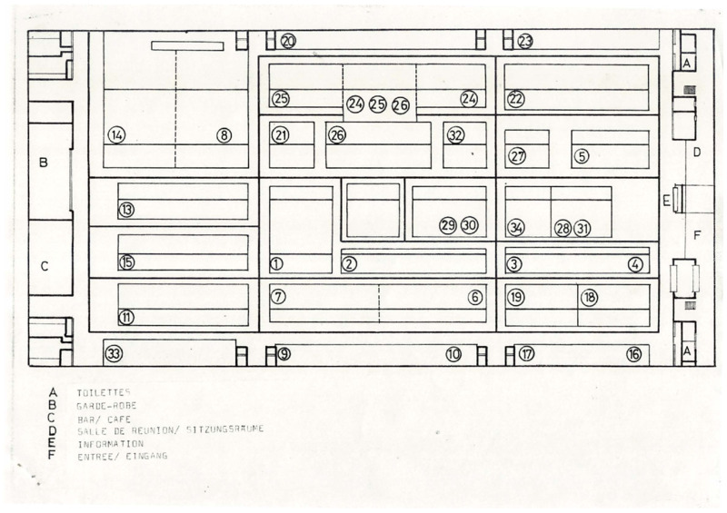 Floor plan of the competition venue, 23rd International Vocational Training Competition, Utrecht 1977