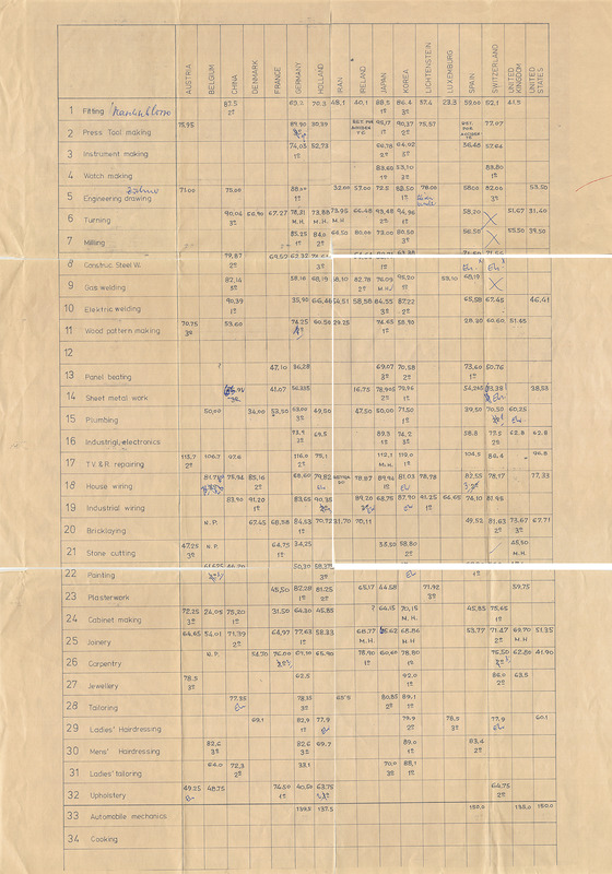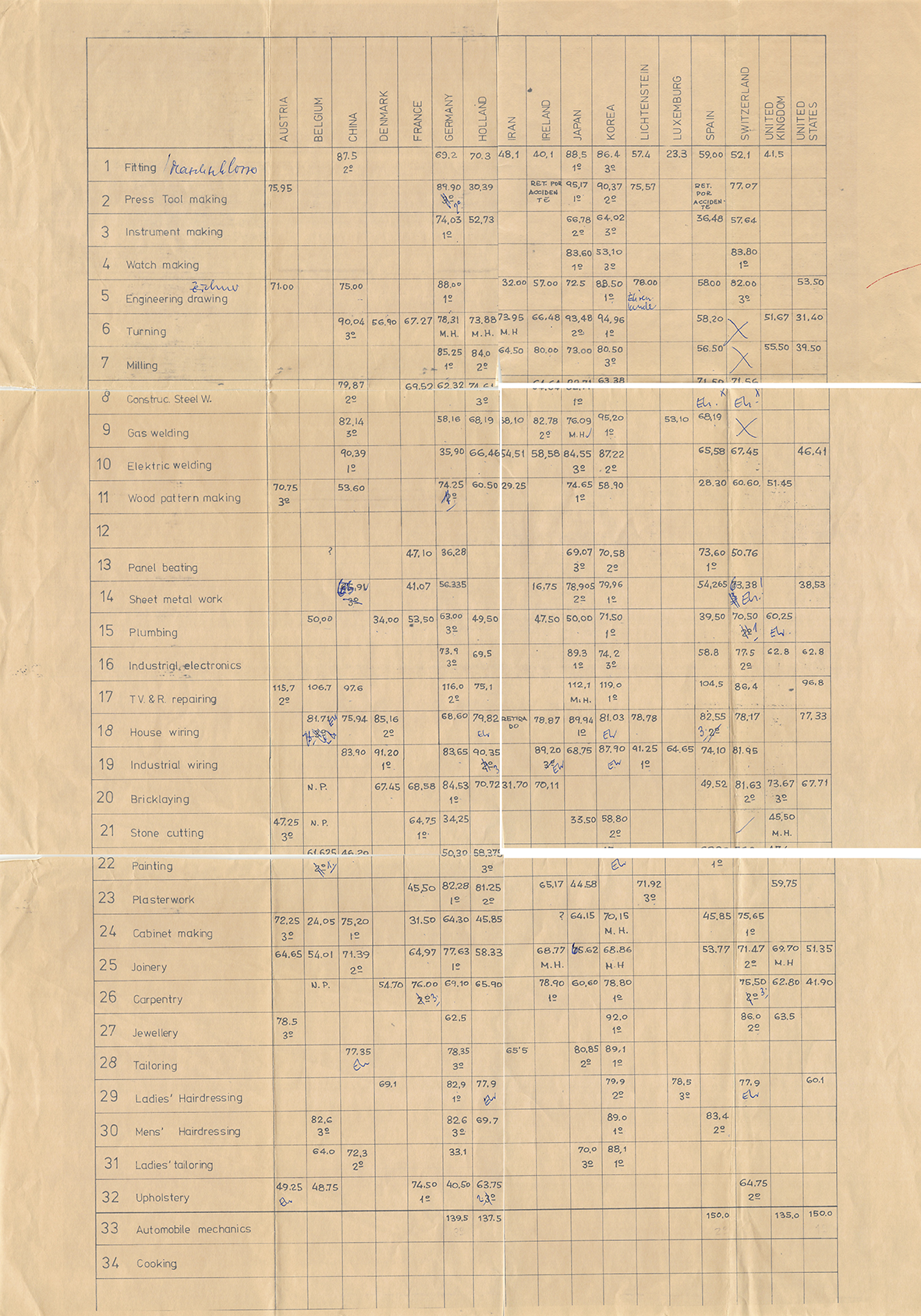 - Results sheet, 23rd International Vocational Training Competition, Utrecht 1977