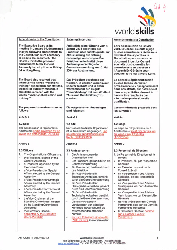 Constitution of WorldSkills (International Vocational Training Organisation), version 2.0 (19/07/2004) |
