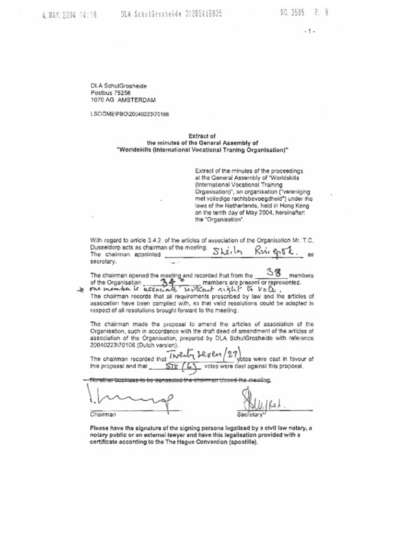 Extract of the minutes of the General Assembly meeting, Hong Kong, 10/05/2004