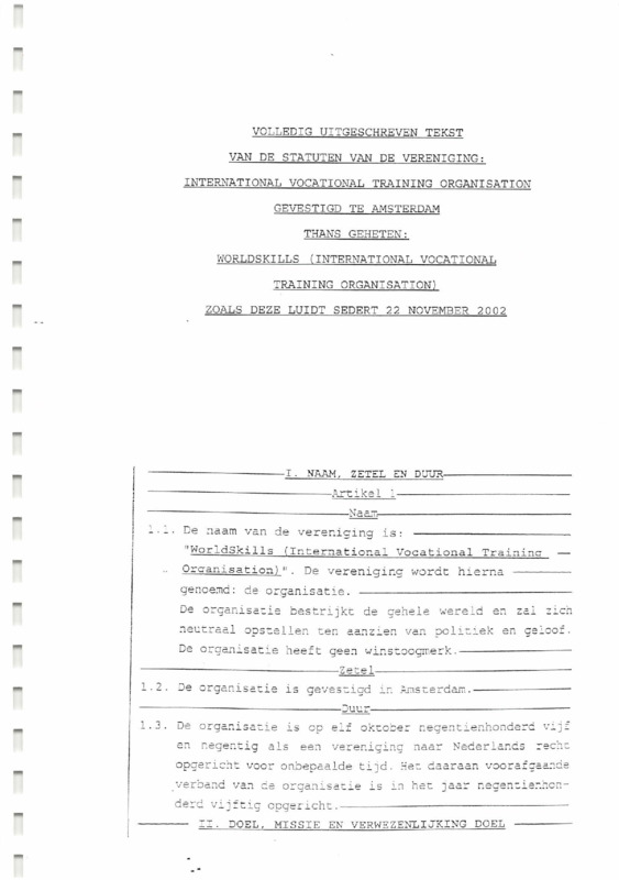 - A full transcription of the statutes of the International Vocational Training Organisation (now WorldSkills), reflecting all amendments effective from 22 November 2002