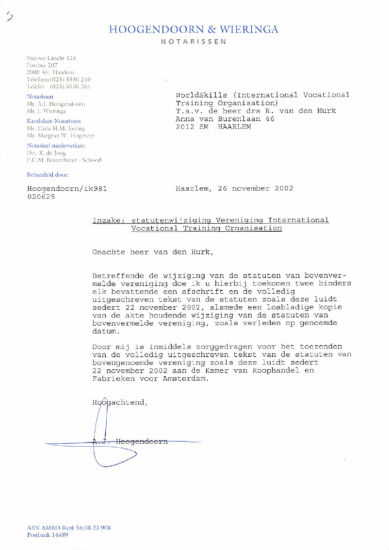 - Letter from A.J. Hoogendoorn to Rudolf van den Hurk, 26/11/2002