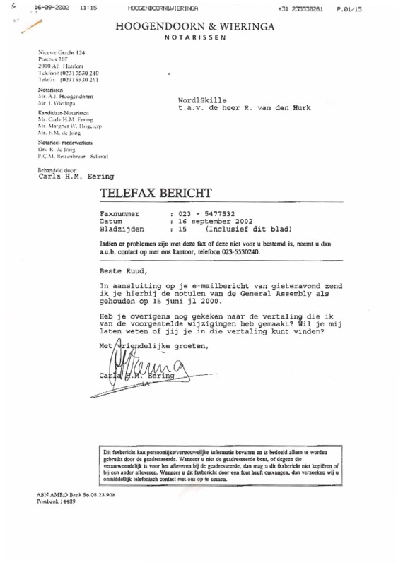 Subject: transmission of the minutes of the General Assembly held in Lisbon on 15 June 2000. Includes the attached trilingual minutes of the General Assembly. - Date