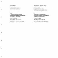 - Deed recording amendments to the Articles of Association of WorldSkills (International Vocational Training Organisation), including the official change of name to WorldSkills International, confirmation of Amsterdam as the registered seat under Dutch law, revisions to governance structure, roles and terms of Officers, powers of the General Assembly and Executive Board, membership definition, sources of income, financial oversight, and provisions for honorary positions. The document includes an unofficial English translation alongside the original Dutch text.