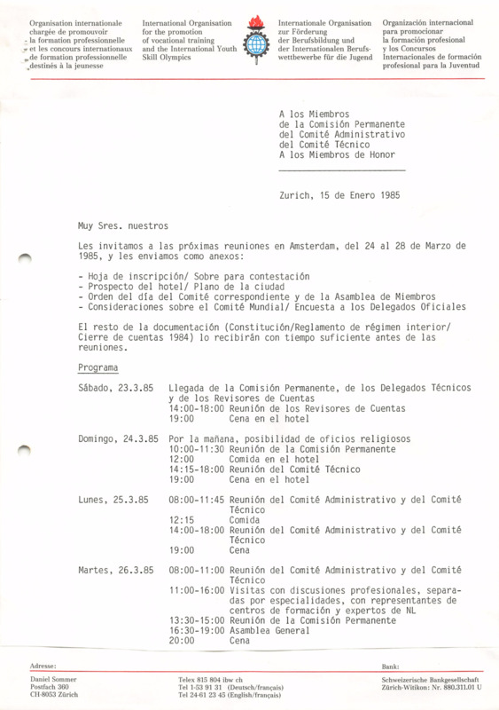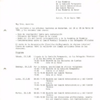 - Letter from Daniel Sommer to members of the Standing Commission, Administrative Committee, Technical Committee, and Honorary Members, 15/01/1985 (ES)
