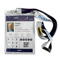 - Delegate badge with branded fabric lanyard issued for the 47th WorldSkills Competition, Lyon 2024. The badge identifies David Hoey, Secretariat and Chief Executive Officer of WorldSkills International. The printed insert includes a portrait photograph, role and organization, access indicators, QR code, and competition branding. The badge is housed in a transparent plastic holder and attached to a fabric lanyard with metal hooks and safety clasp.