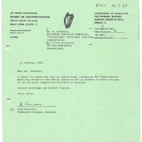 - Letter from Liam Corcoran to René Gonthier, 11/01/1985