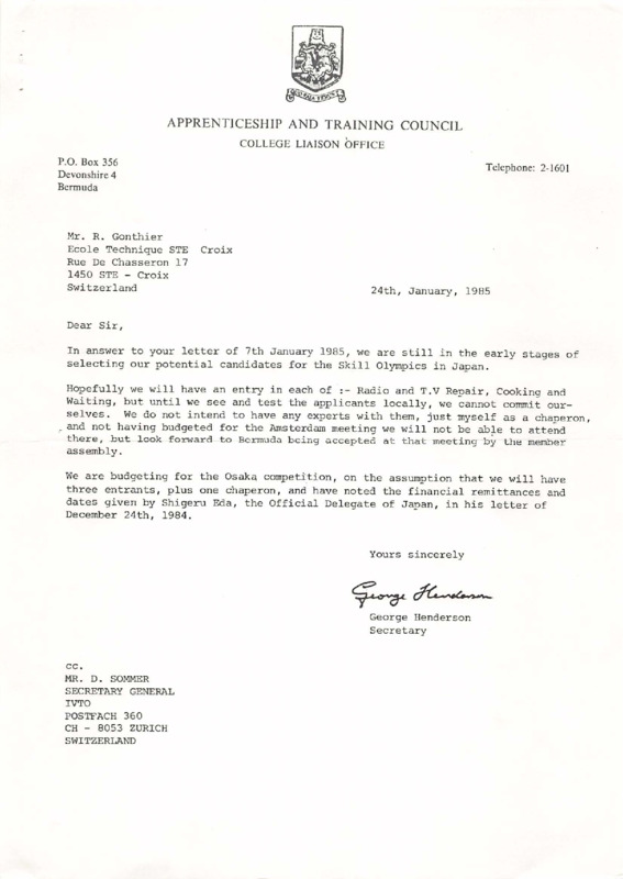 Subject: Bermuda’s preliminary intentions and budget assumptions regarding participation in the 28th International Apprentices Competition, Osaka 1985, pending local selection of Competitors. - Date