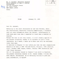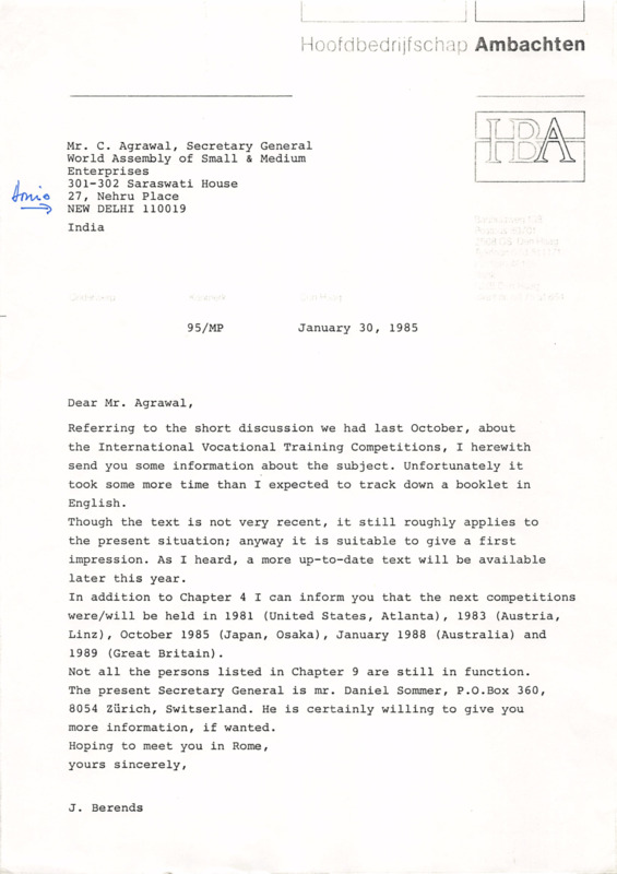 Subject: Reference to an introductory booklet on the International Vocational Training Competitions (not enclosed), including mentions of chapters on competition editions and Secretariat information - Date
