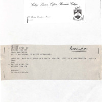 Subject: Confirmation of receipt of a check for CHF 1,007.50 from Bermuda, accompanied by a complimentary card from the College Liaison Officer, Bermuda College, with both items stapled together on a single sheet - Date