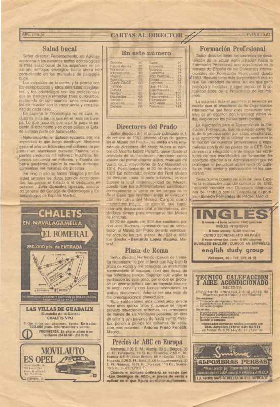 - Letter from Simeón Fernández de Pedro to the Editor, published in ABC, 08/10/1987