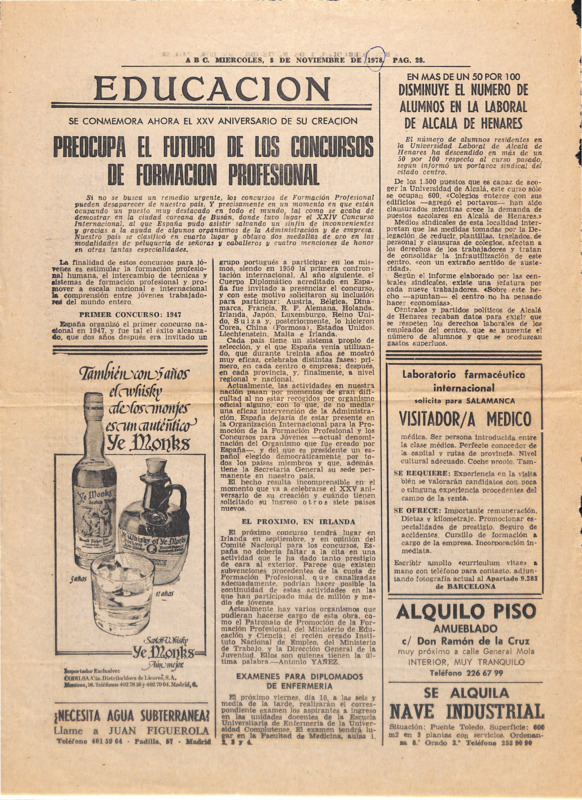 Press article: “Preocupa el futuro de la Formación Profesional”, ABC, 08/11/1978