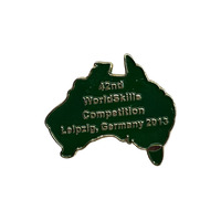 Metal pin shaped as the outline of Australia, produced in for the 42nd WorldSkills Competition, Leipzig, Germany, 2013.