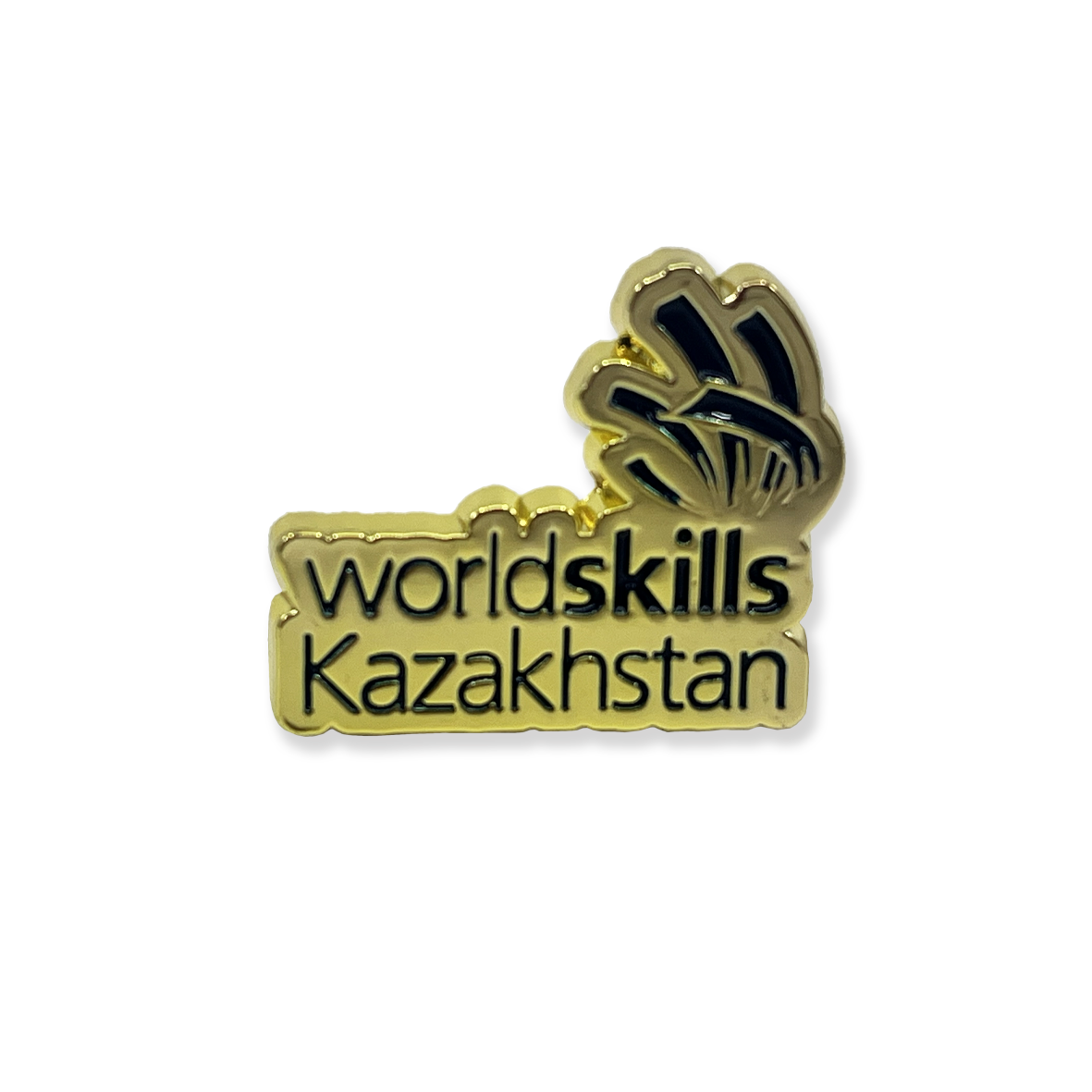 - Gold-coloured metal pin badge featuring the WorldSkills Kazakhstan logo