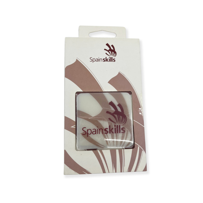 - Square mobile phone accessory featuring the “SpainSkills” logo, presented in original retail packaging.