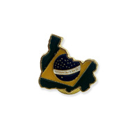 Brazil-shaped pin with national flag Metal pin in the shape of the map of Brazil, featuring the Brazilian flag incorporated into the design at the center. -